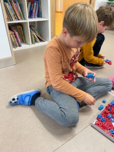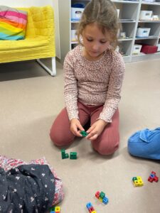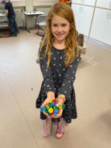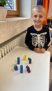 Heute hat sich die Klasse 1b mit sogenannten Tetrominos beschäftigt. Tetrominos sind Formen, die aus genau vier gleich großen Quadraten bestehen, die aneinandergelegt sind. Vielleicht kennen einige sie auch aus dem bekannten Spiel „Tetris“. Die Kinder haben die verschiedenen Tetromino-Formen gemeinsam entdeckt und gezeichnet. Anschließend durften sie die Formen mit bunten Steckwürfeln nachbauen. Dabei war viel Geschick gefragt – und natürlich auch Teamarbeit. Mit großer Begeisterung und viel Motivation waren alle Kinder bei der Sache. So wurde nicht nur das räumliche Denken gefördert, sondern auch die Freude an Mathematik spielerisch geweckt und die neue Zahl 4 auf spielerische Weise neu entdeckt